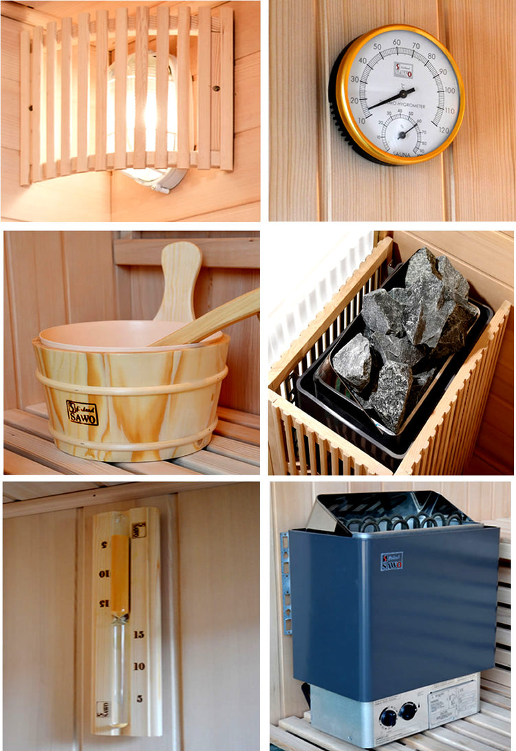 Comes complete with water bucket + ladle, sand timer, powerful 4.5KW heater, rocks, digital control panel, thermometer + hygrometer, commodity shelf + towel holder included!