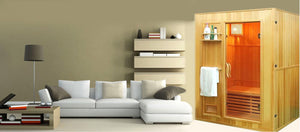 - This is labeled as a 2 person sauna, but we like to call it a 1/2 person because the heater takes up some floor space. It can fit 2 small / medium sized people, but 1 people will be comfortable inside this sauna.