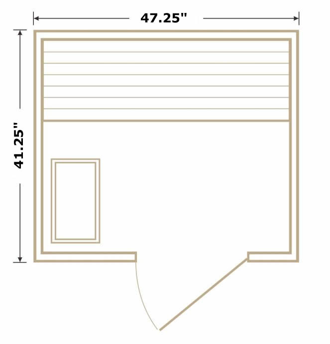 - Measurements: 47.25" Wide x 41.25" Deep x 75.5" Tall (Note, 47.25" width is not included the wall mounted outer digital control panel. Add 3.5" for this, otherwise it would need to be mounted on front. Inside height is 70". Inside depth (front to back) is 37". Interior width 44". Bench size is 44" x 17" Deep. Door / Glass Size is 61" Tall x 21.75" Wide.