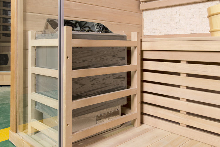 - Powerful 4.5KW Heater Included with Upgraded Digital Control Panel, Rocks, Water Bucket, Water Ladle to create steam