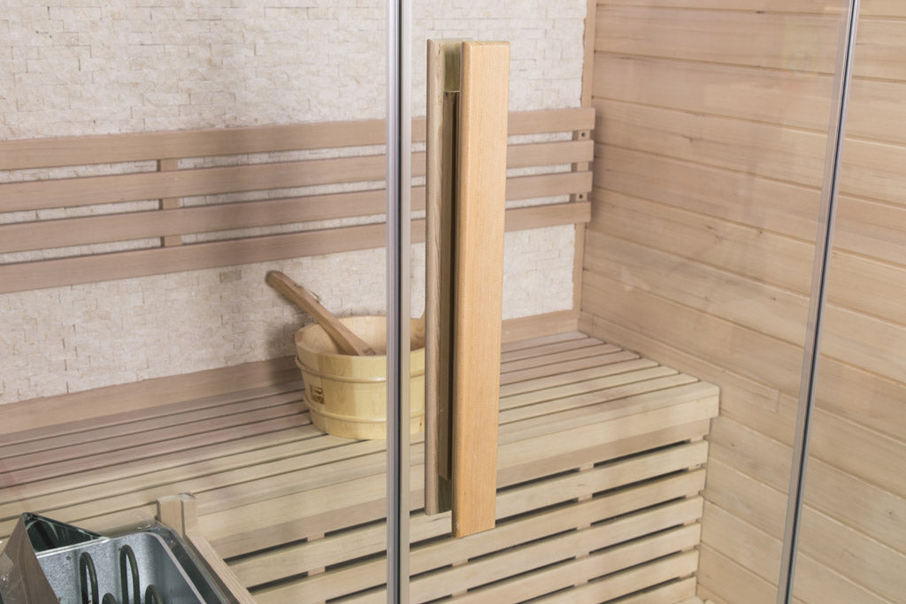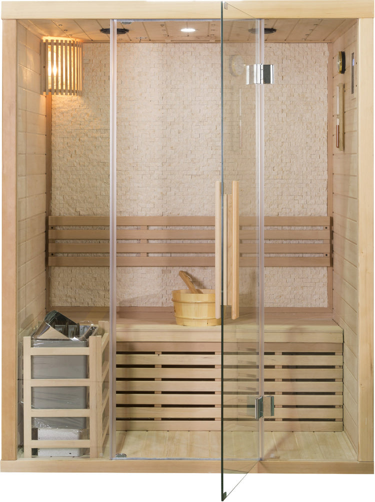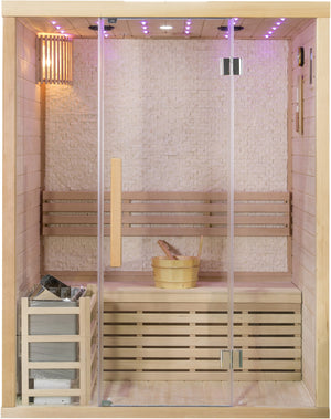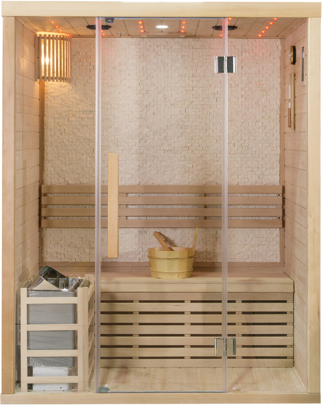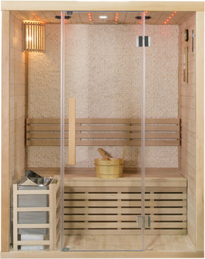 2/3 Person Canadian Hemlock Glass Front Indoor Swedish Wet Dry Traditional Steam Sauna w/ 4.5KW Wet Dry Heater Upgrade