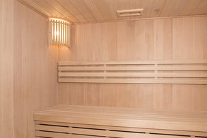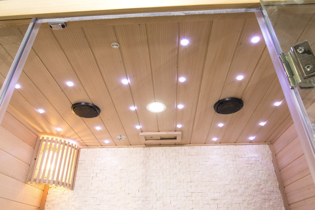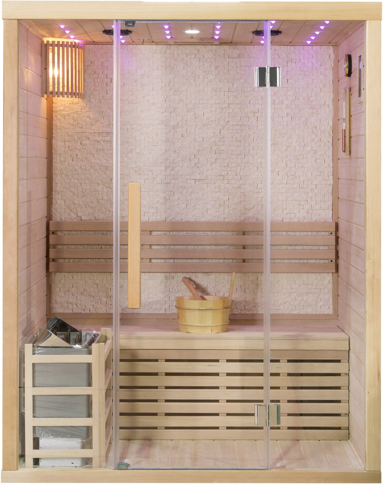 - Comes complete with all accessories needed. (In addition to heater and rocks above, this also comes with a sand timer, thermometer, hygrometer, LED Ceiling Star Lighting, LED reading light, rock wall / backsplash, interior + exterior control panel + bluetooth upgrade, towel rack, cupholder, stainless steel exterior door handle, and more!