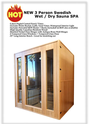 Includes Upgraded 6KW (6000W) Wet / Dry Heater which will reach 200F Degrees!