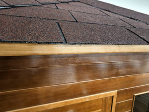 - Waterproof Shingled Roof Included (Requires Installation) Roof tiles are red as pictured, but can easily be removed to use another color