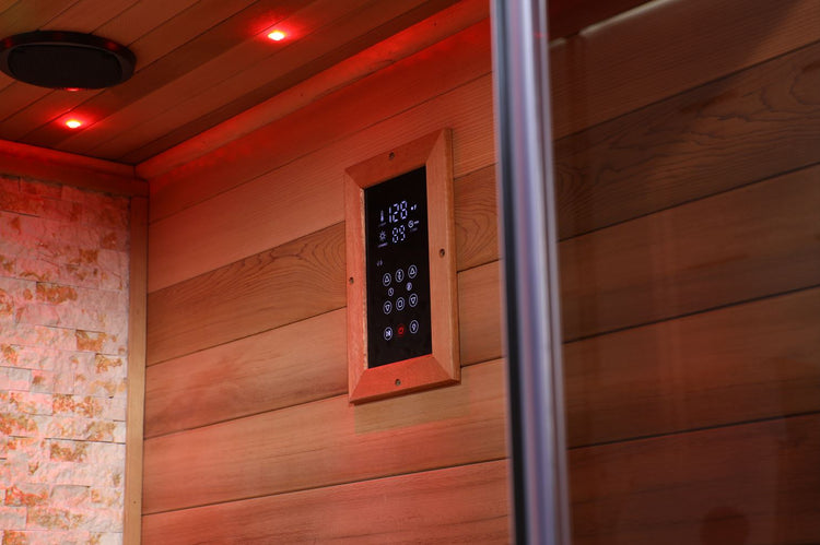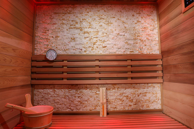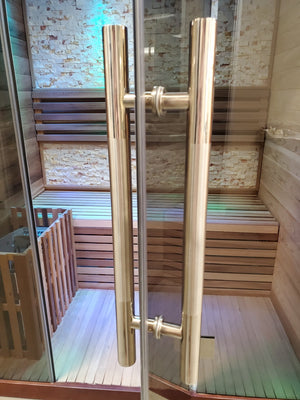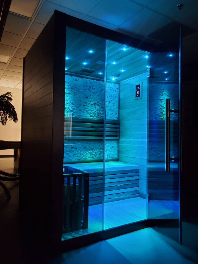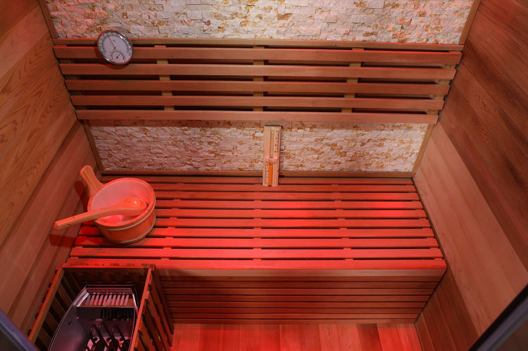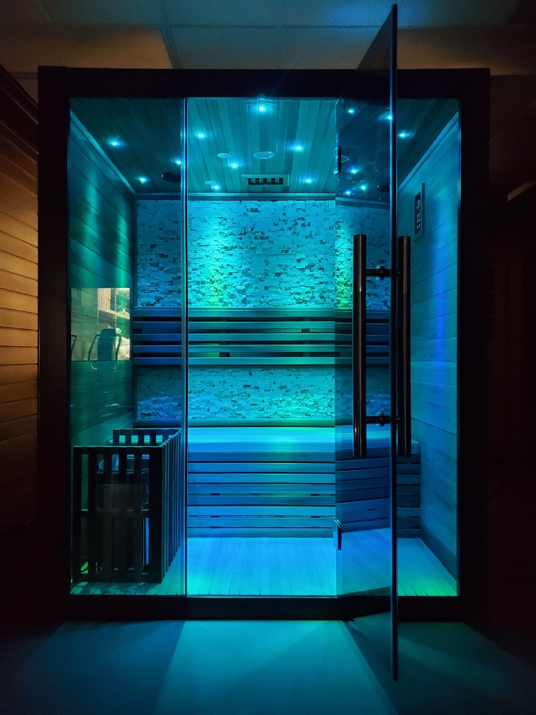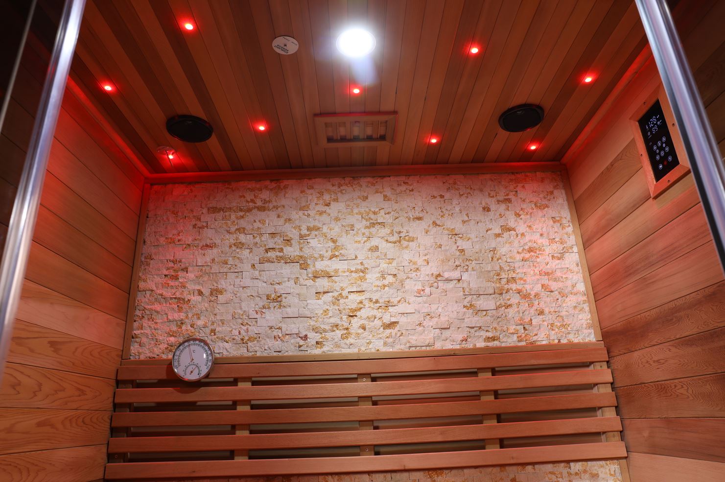 Comes complete with water bucket, ladle, sand timer, Powerful 6KW Harvia heater, rocks, bluetooth equipped digital control panel, built in bluetooth sound system, full color LED star ceiling lighting! High 200F temps are perfect for detox, weight loss, and many other health benefits! With the Upgraded Harvia 6KW Heater will heat up faster and get much hotter than many others.