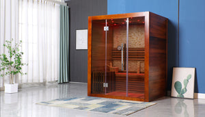 2/3 Person Canadian Red Cedar Traditional Swedish Finnish Steam Sauna SPA Harvia 6KW Heater Upgrade