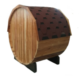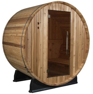 2 Person 6' Diameter x 4' Long Canadian Red Cedar Barrel Outdoor Wet Dry Swedish Sauna with Porch ** 6KW Heater Upgrade