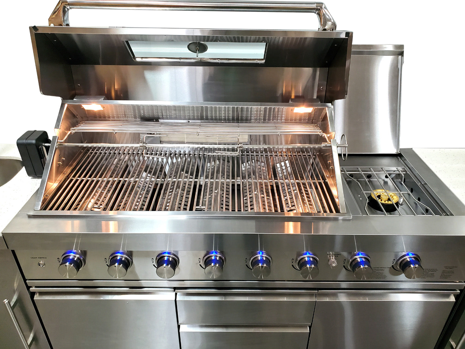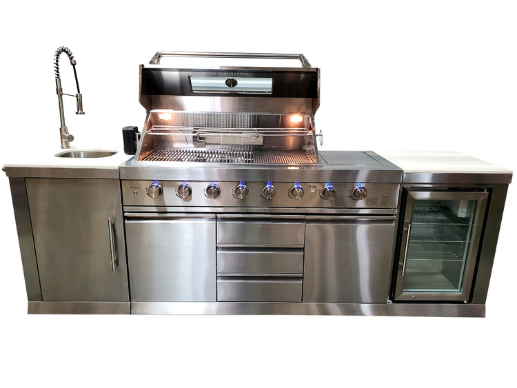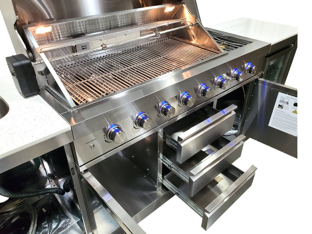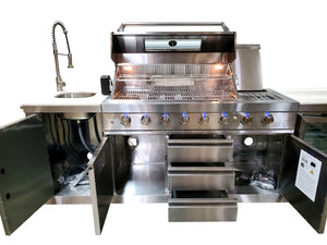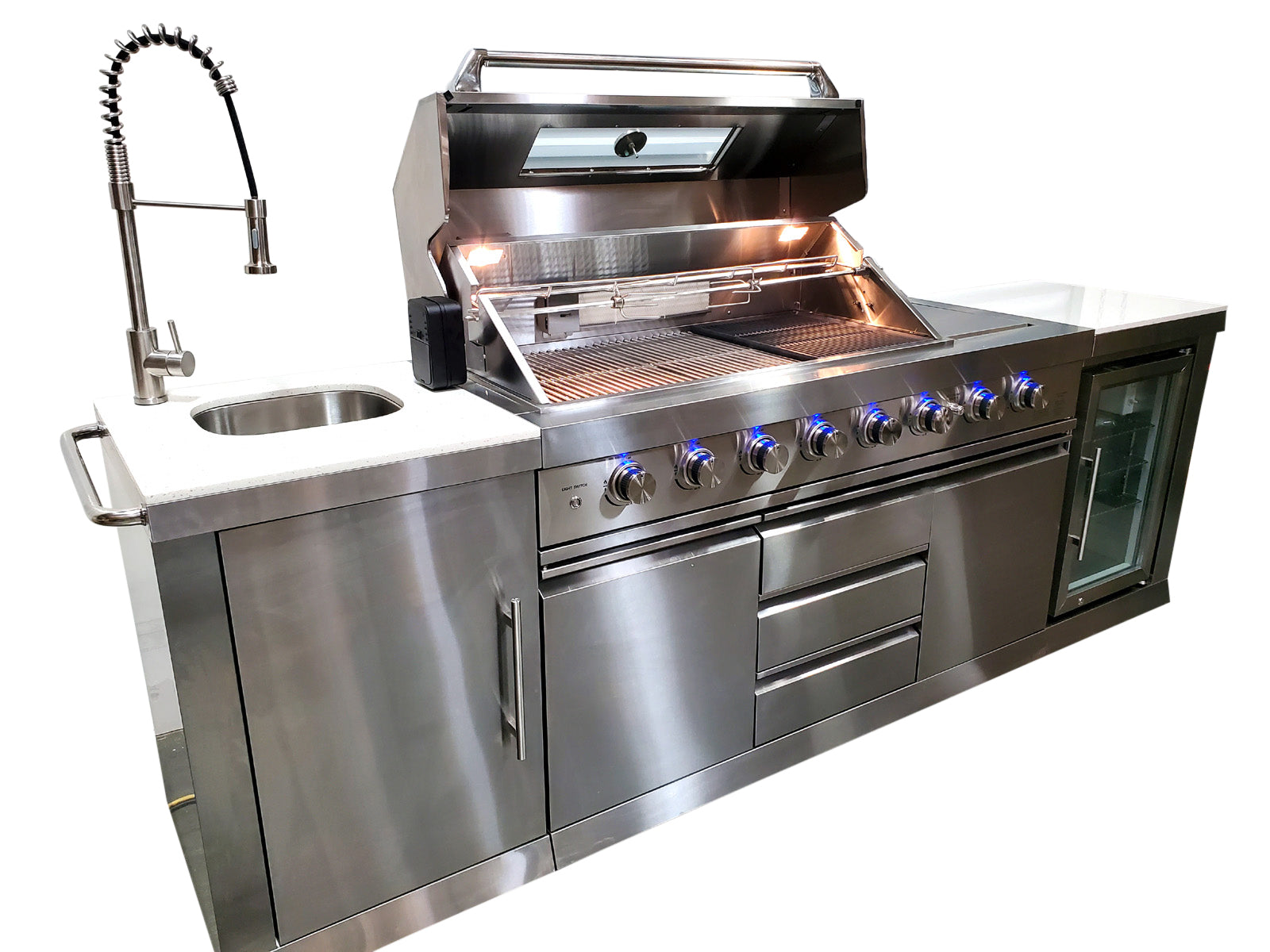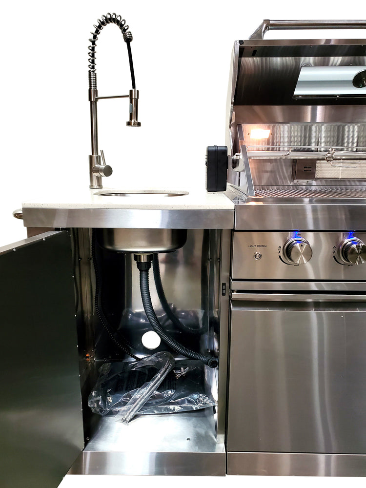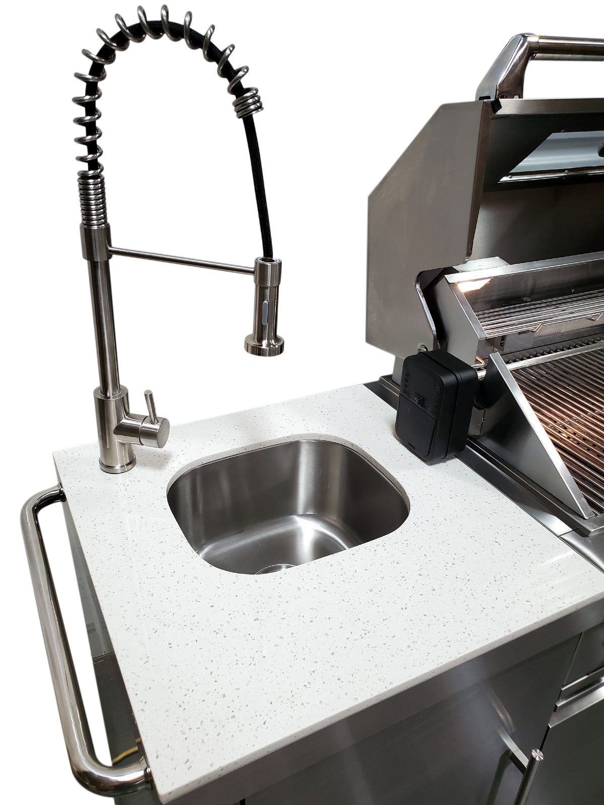 - SS304 Sink, Faucet, Grates, Burners, Burner Covers, and Outdoor
