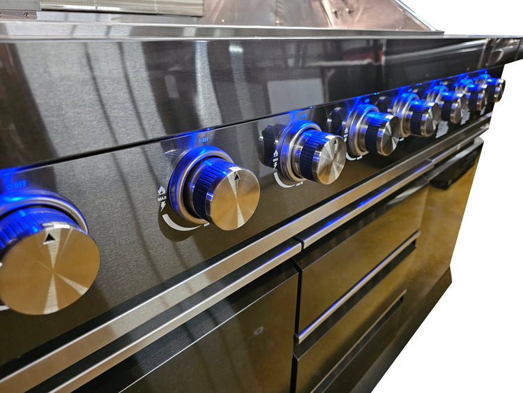 - Upgraded Metal Knobs w/ Blue LED Lighting